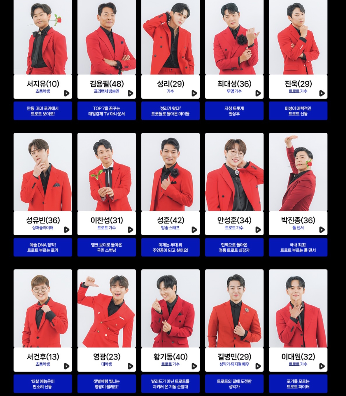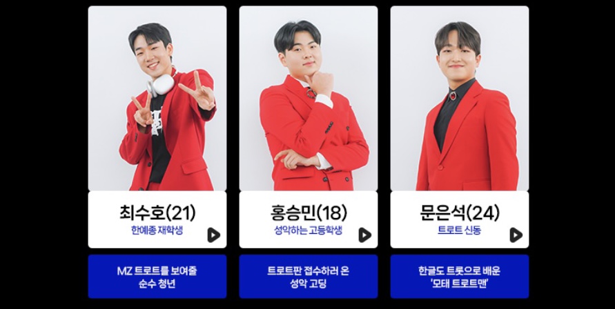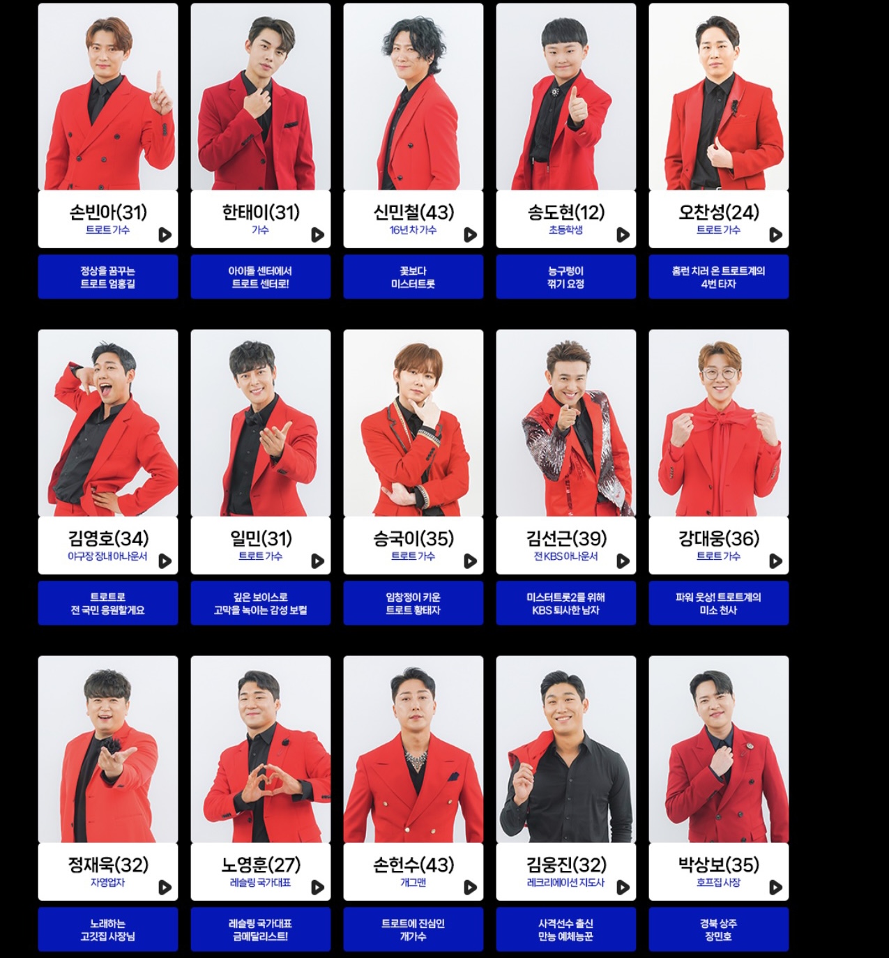 미스터 트롯을 이끌어갈 차세대 주자는 과연 누가 될 지 정말 궁금합니다. 오늘 밤 모두 티브이 앞에 옹기종기 모여 그들의 매력에 빠져 보는 것은 어떨까요? 새로운 전설이 바로 오늘 밤 시작 됩니다.