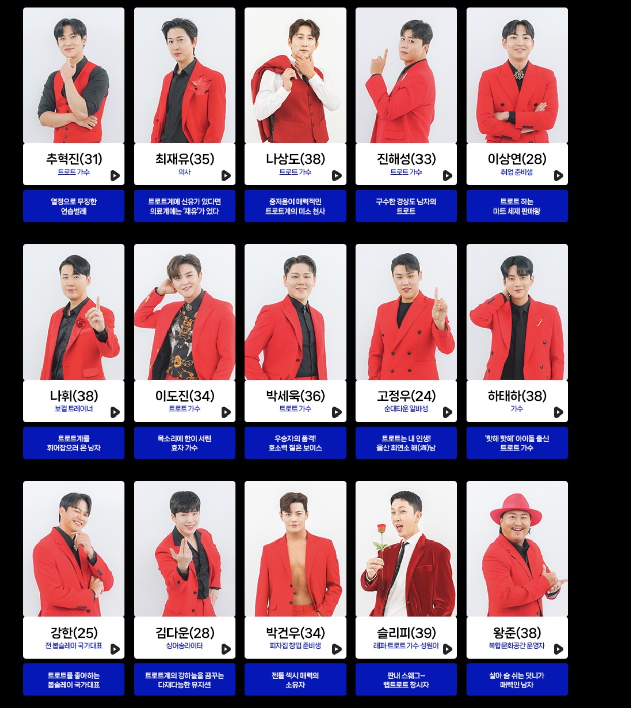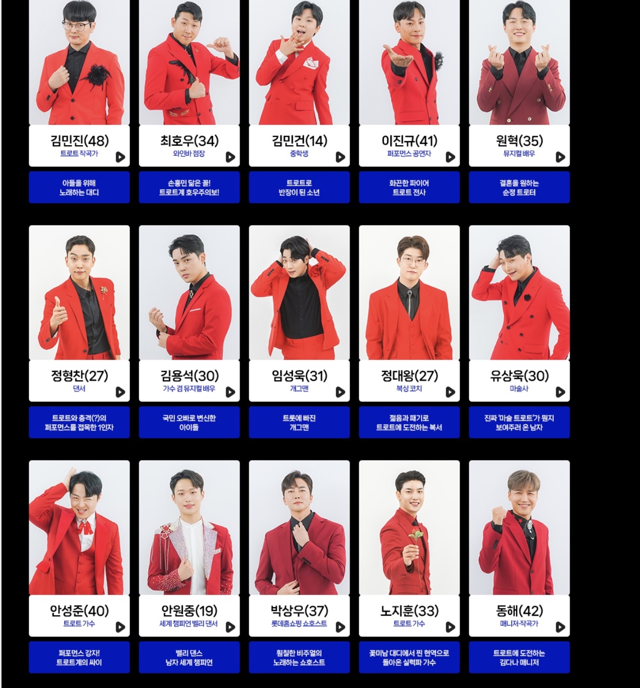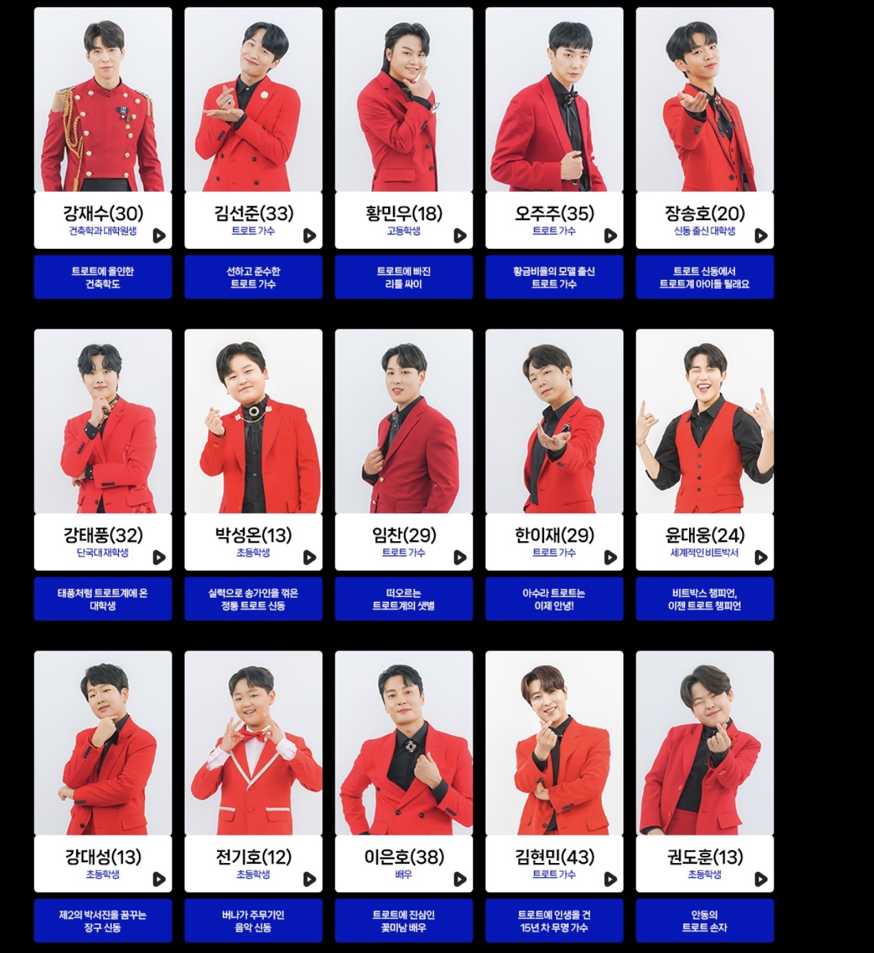 미스터 트롯을 이끌어갈 차세대 주자는 과연 누가 될 지 정말 궁금합니다. 오늘 밤 모두 티브이 앞에 옹기종기 모여 그들의 매력에 빠져 보는 것은 어떨까요? 새로운 전설이 바로 오늘 밤 시작 됩니다.