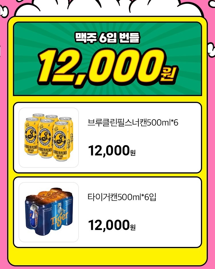 맥주는 스텔라, 호가든, 칭다오, 버드와이저 등 인기 맥주를 4캔을 1만 원에 구입 가능합니다. 그리고 브루클린필스너캔과 타이거 캔은 6개에 12000원에 구입가능합니다. 평소보다 4500원을 절약하실 수 있습니다. 그리고 써머스비와 타이거레몬 캔은 4캔에 8000원으로 2천 원 할인된 가격에 구매할 수 있습니다. 카스 병맥도 5병에 7900원으로 이용 가능합니다. 더운 여름 우리를 위로해 줄 맥주를 조금이나마 저렴하게 구입할 수 있어서 정말 다행입니다.