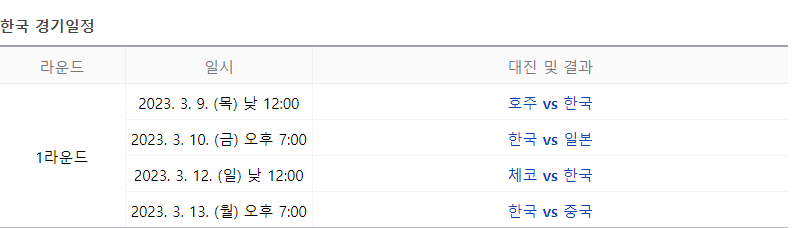 WBC 경기일정