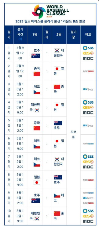 WBC 중계 일정